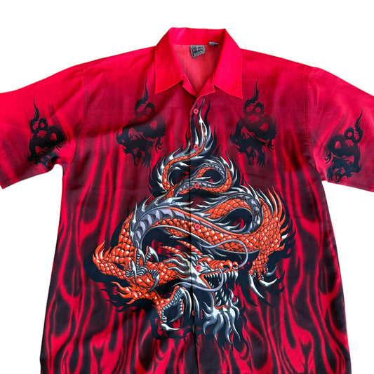 Authentic Shaolin Brand Button Up y2k Dragon Red Mens Large