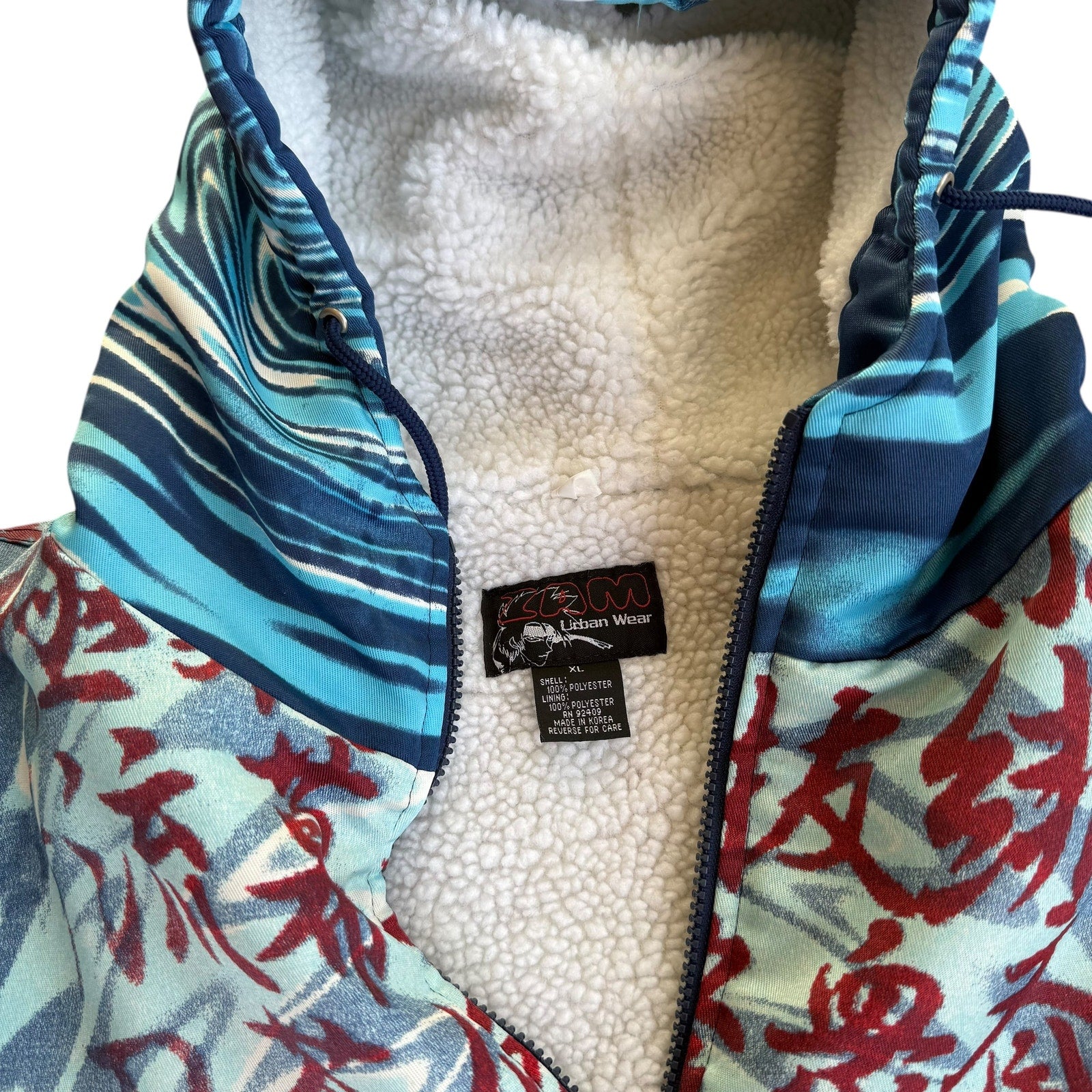 Vintage 90s ZAM Rurouni Kenshin Anime AOP Puffer Coat Hoodie Mens XL