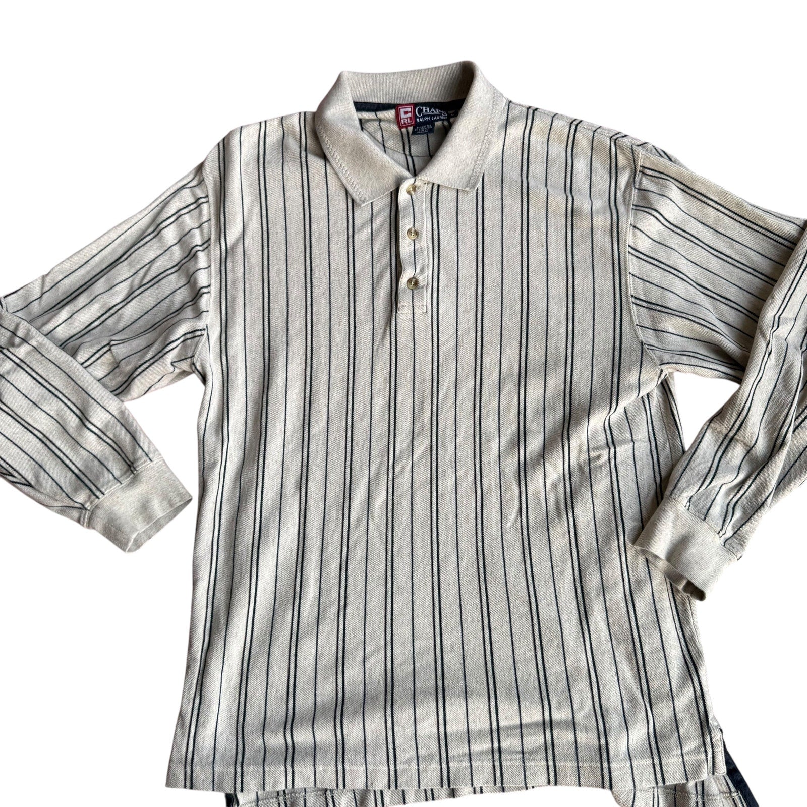 Vintage Chaps Ralph Lauren Cream LongSleeve Polo Shirt Mens Large