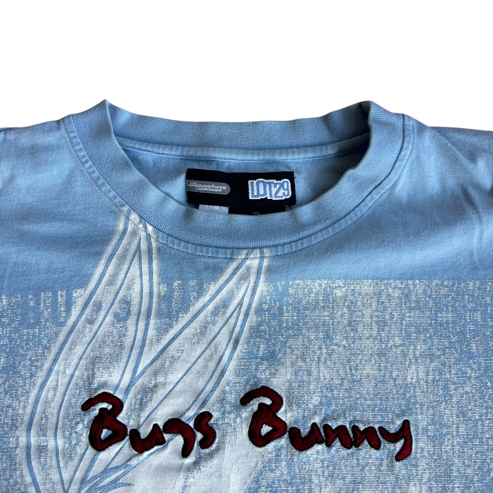 - early 2000s Lot29 Bugs Bunny large print t-shirt in baby blue colorway