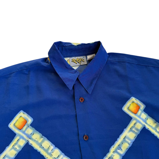 Up Ro's Medusa Head Blue Vintage 90s y2k ButtonUp AOP Mens Large
